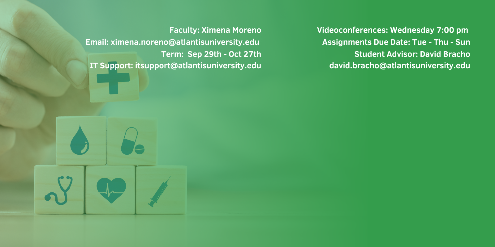 El propósito de este curso es presentar a los estudiantes los sistemas y modelos de atención médica global y su influencia en las disparidades de salud y la prestación de atención médica. Un enfoque principal de este curso es que los estudiantes piensen críticamente y discutan la salud y el cuidado de la salud dentro de un entorno global. Los estudiantes de enfermería estarán expuestos a las disparidades de salud que existen en los Estados Unidos y países de todo el mundo, y algunos de los esfuerzos de individuos, grupos, organizaciones y países para hacer frente a las disparidades. Además, los estudiantes recibirán información y herramientas que la enfermería pueden utilizar para enfrentar los desafíos de salud y atención médica.